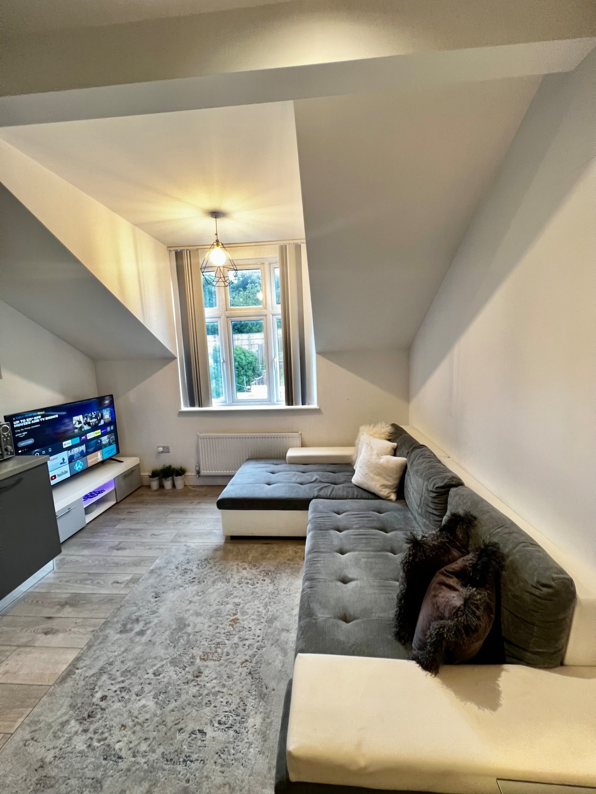 Affacciato sui campi, questo lussuoso spazio all'ultimo piano ti invita a rilassarti. Ultra-pulito, tranquillo e splendidamente arredato. Dotato di tutto il necessario e anche di più. Prepara un caffè fresco con la macchina da caffè Ninja Luxe. Guarda i tuoi programmi preferiti sulle Smart TV, gioca a giochi da tavolo in gruppo o lavora dove la vista ti ispira. Qualunque sia lo scopo del tuo soggiorno, lavorare o rilassarti, questo è il posto giusto! Londra è vicina, ma sembra un mondo lontano. C'è sempre un posto dove parcheggiare!