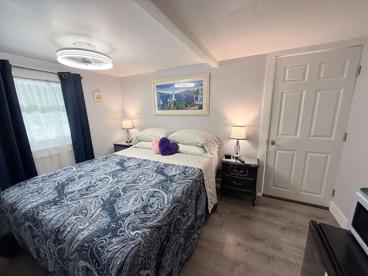 ⭐️⭐️⭐️⭐️⭐️ Your own private entrance suite with private bathroom. Free Parking! Super comfy, Tempurpedic adjustable bed with remote control! Any position you like! TV with Firestick internet, fridge, AC, microwave and drip coffee pot. Nice sunny patio seating area right outside your door and a parking spot if needed. We are pet friendly with pet fee. Just let us know who coming to stay! It’s not a huge space, but who comes to Ptown to spend all day in their room anyway! 😀🌈🐕
