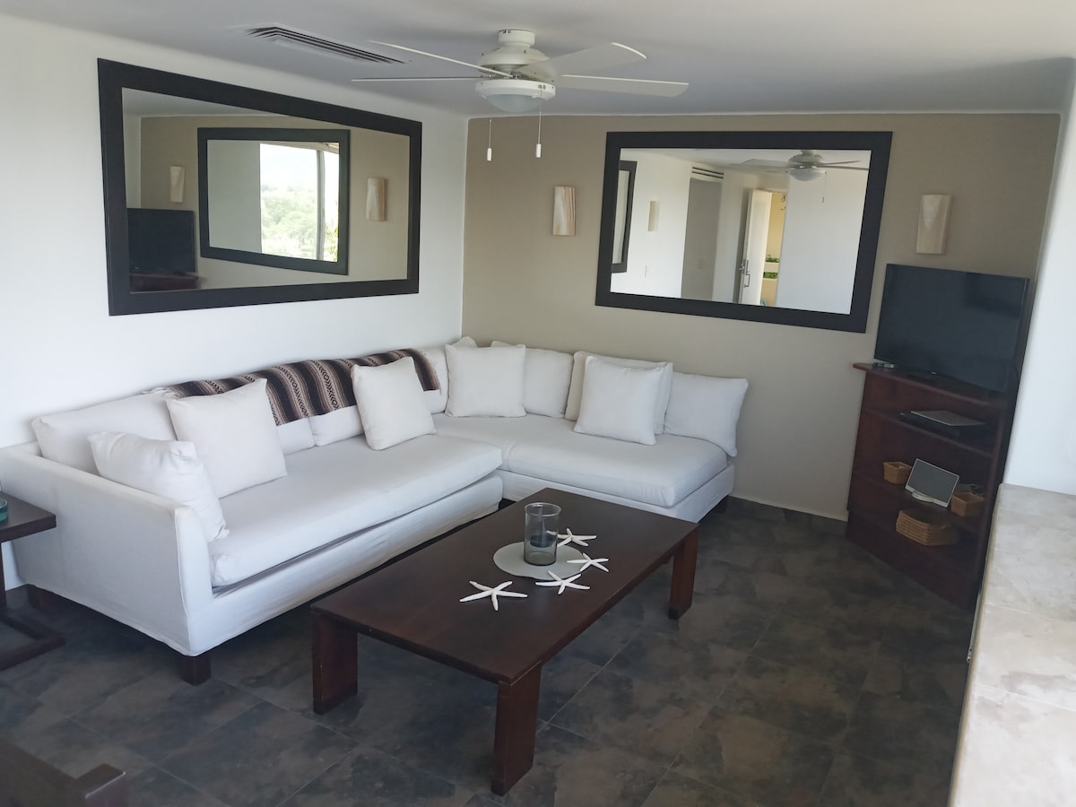 Rilassati in questo spazio tranquillo ed elegante, situato a Punta Garrobo, il complesso più esclusivo di Zihuatanejo, immerso nelle lussureggianti colline, con incredibili viste sulle verdi montagne e sull'Oceano Pacifico. Servizi: - Piscina privata - Servizio di pulizia incluso (ogni tre giorni) - Aree esterne - Beach Club - Giocatore di tennis e paddle tennis (nessuna attrezzatura inclusa) - Finanziatori naturali - Kayak (non forniamo bagnini)
