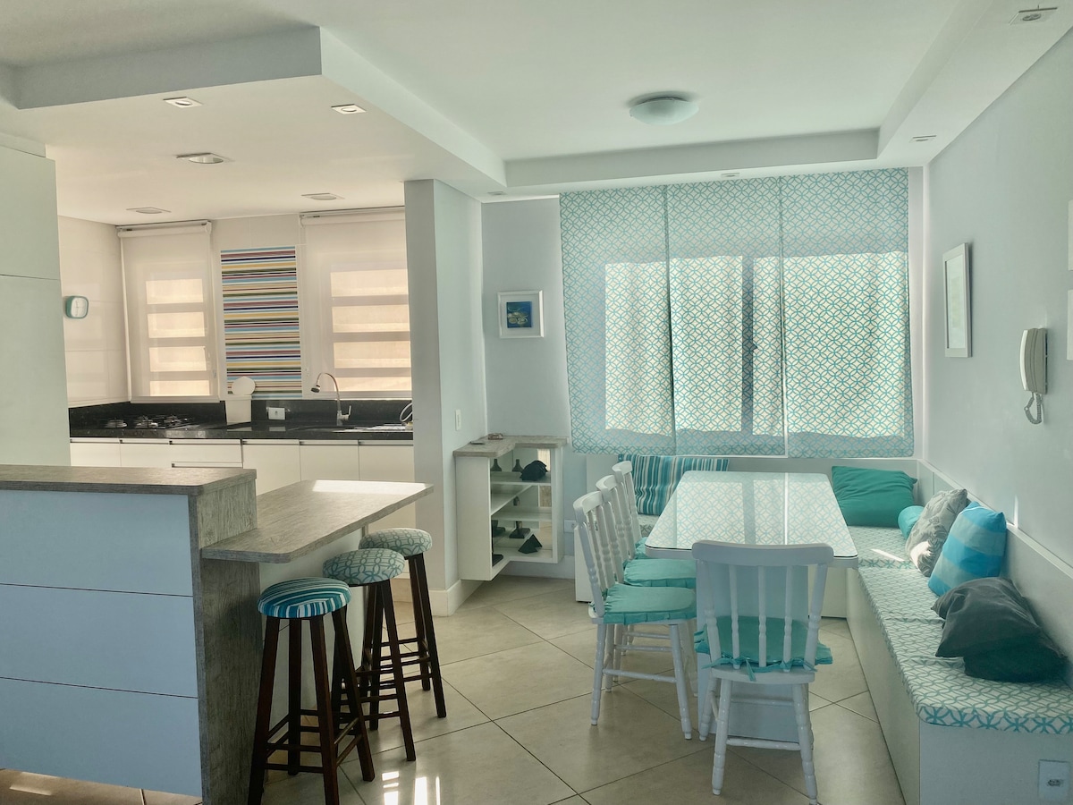 Rilassati con la famiglia e gli amici in questa casa ariosa, confortevole e soleggiata! Finestra panoramica con vista sul mare e un'alba unica, accanto al barbecue.... AP privato e silenzioso, 100m2! 2 minuti dalla spiaggia e quattro minuti dal centro della città! Mercato, gelateria, caffetteria, bar a pochi passi dall'appartamento! Smartv con Netflix. Wi-Fi ad alta velocità! Ampia pista ciclabile che passa davanti all'appartamento! Balcone con vista sulle montagne della Serra do Mar e spettacolare tramonto!