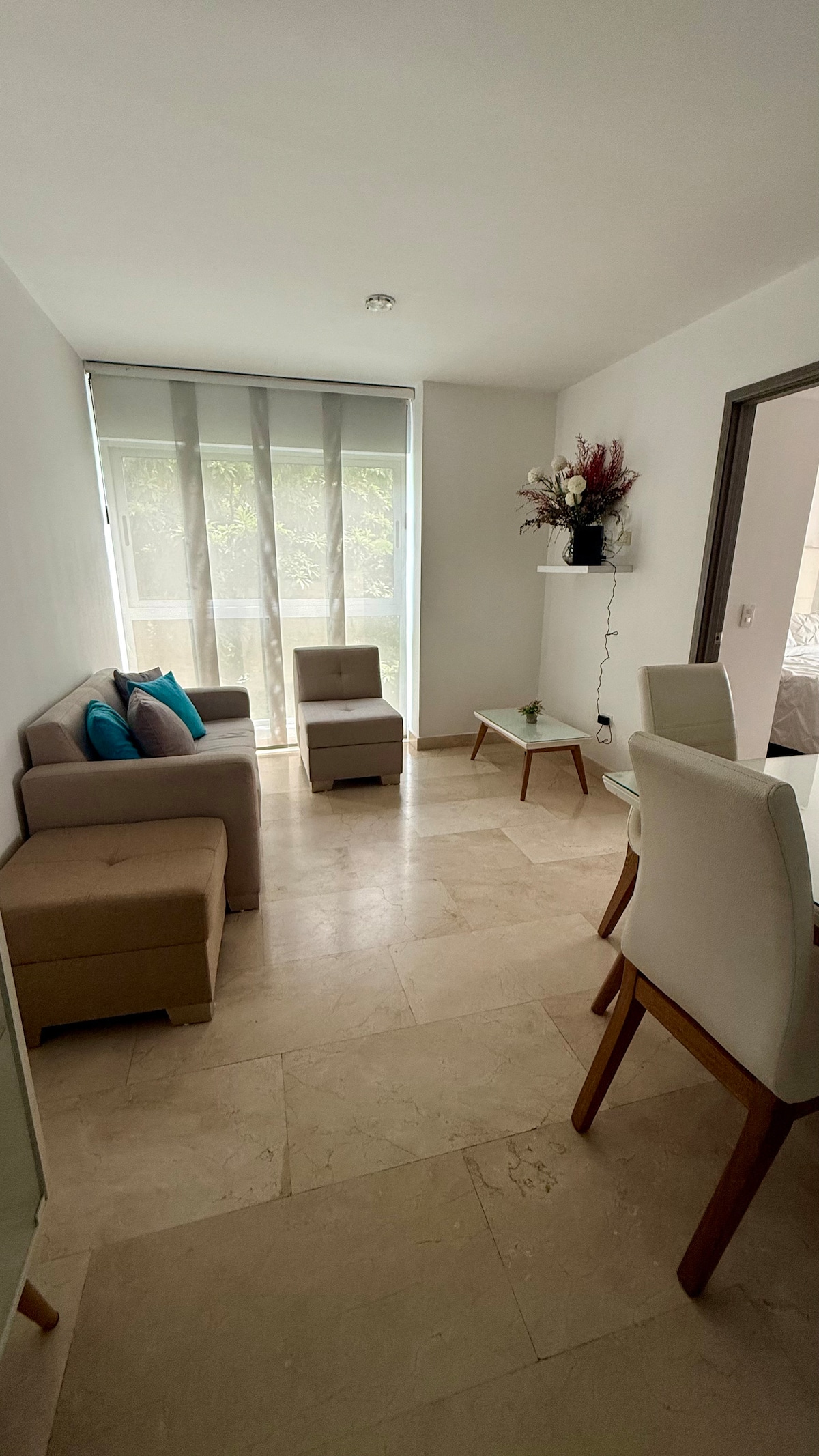 Moderno appartamento situato in uno dei quartieri più esclusivi di Barranquilla. * Check-in e check-out flessibili *1 camera da letto con letto matrimoniale e aria condizionata. *Soggiorno con divano letto e aria condizionata. *Cucina completamente attrezzata con utensili, elettrodomestici di base e lavatrice. *Piscina, sauna, bagno turco e terrazza sul tetto. * Palestra Smartfit nelle vicinanze. *Parcheggio privato gratuito. *Vicino ai centri commerciali VIVA e Buenavista, e alle principali cliniche e zone turistiche.