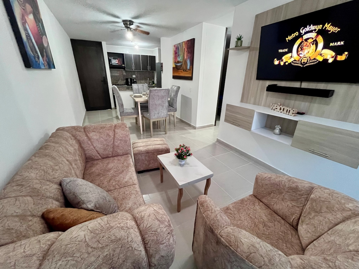 Disfruta de este lindo y tranquilo alojamiento que tiene excelente ubicación, se encuentra en un piso 5, es acogedor y cómodo, cuenta con todo lo que necesitas para estancias cortas o largas, tiene estacionamiento gratis en el sótano, entra mucha ventilación y luz, 2 aires acondicionados, edificio nuevo con zonas comunes y ascensor, el barrio es super tranquilo y hay un centro comercial, restaurantes y supermercados muy cerca. Ideal para recuperaciones por intervenciones médicas.