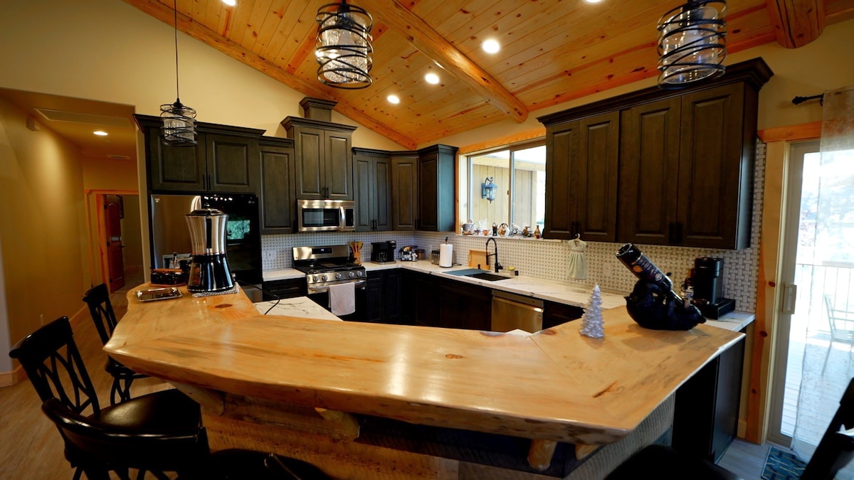 Rilassati e ricaricati in quest'elegante spazio, un chalet vintage. I servizi di lusso includono: 1. Cucina completamente attrezzata con pentole e padelle Le Crueset, elettrodomestici Kitchenaid e molto altro ancora. 2. Soggiorno confortevole ed elegante con impianto audio Sonos e televisore con soundboard e subwoofer. 3. Ampia e sofisticata sala da pranzo per gustare un pasto gourmet o da utilizzare come spazio per l'ufficio. 4. Un terzo di acro di proprietà circondato da bosco e privacy. 5. Ampio patio esterno per consumare un pasto in mezzo alla natura.