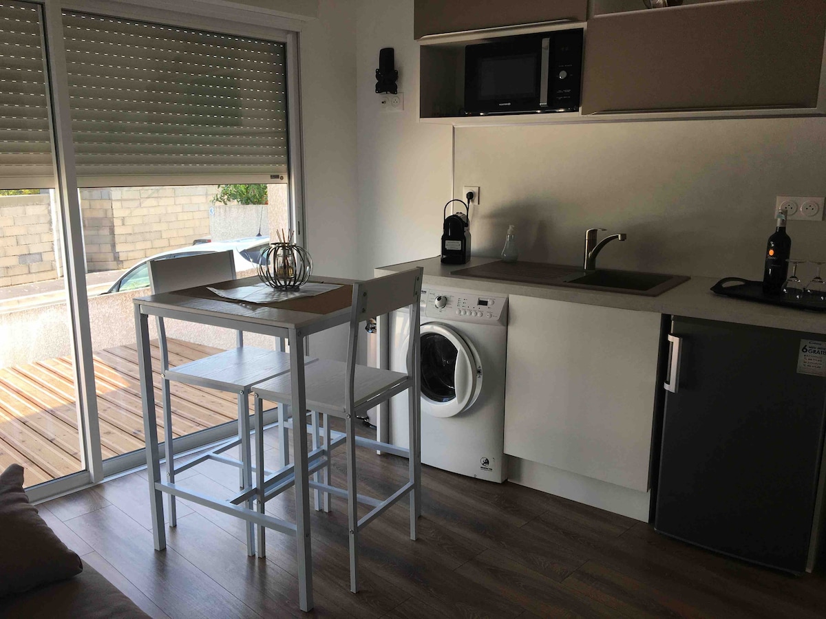 Joli T2 calme, parking, terrasse 10 min de la mer.