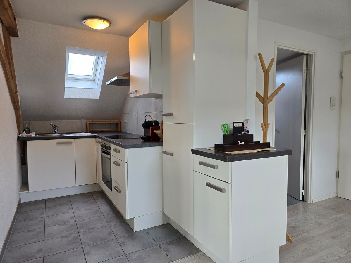 Il nostro accogliente appartamento al primo piano di un fienile ristrutturato offre il meglio di entrambe le realtà: il fascino della vita di campagna e il comfort moderno. Situato in una strada tranquilla (senza traffico), l'appartamento offre un cortile sul davanti con parcheggio e un bellissimo giardino sul retro con accesso diretto all'idilliaco Lutterbach. A soli 30 minuti di distanza si trova l'offerta culturale della città fieristica di Basilea, con i suoi numerosi musei, gallerie ed eventi.