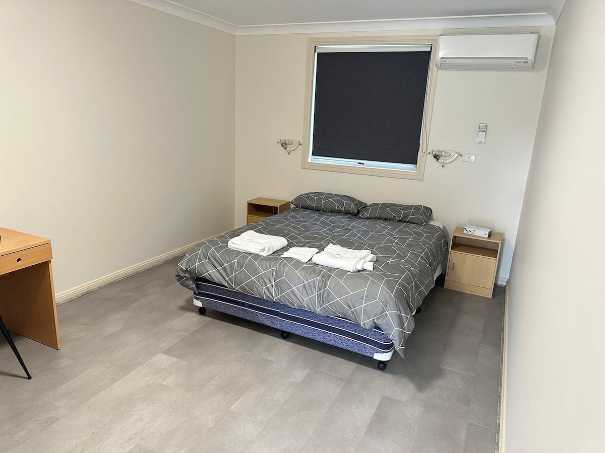 La mia seconda camera in offerta nella mia grande casa dispone di un letto matrimoniale e di tutto il necessario per una notte di riposo decente a circa 8 minuti di auto dal Bathurst CBD. Puoi anche raggiungere a piedi la città e goderti i ristoranti locali in abbondanza o prendere l'autobus all'angolo della mia strada. Benvenuto.