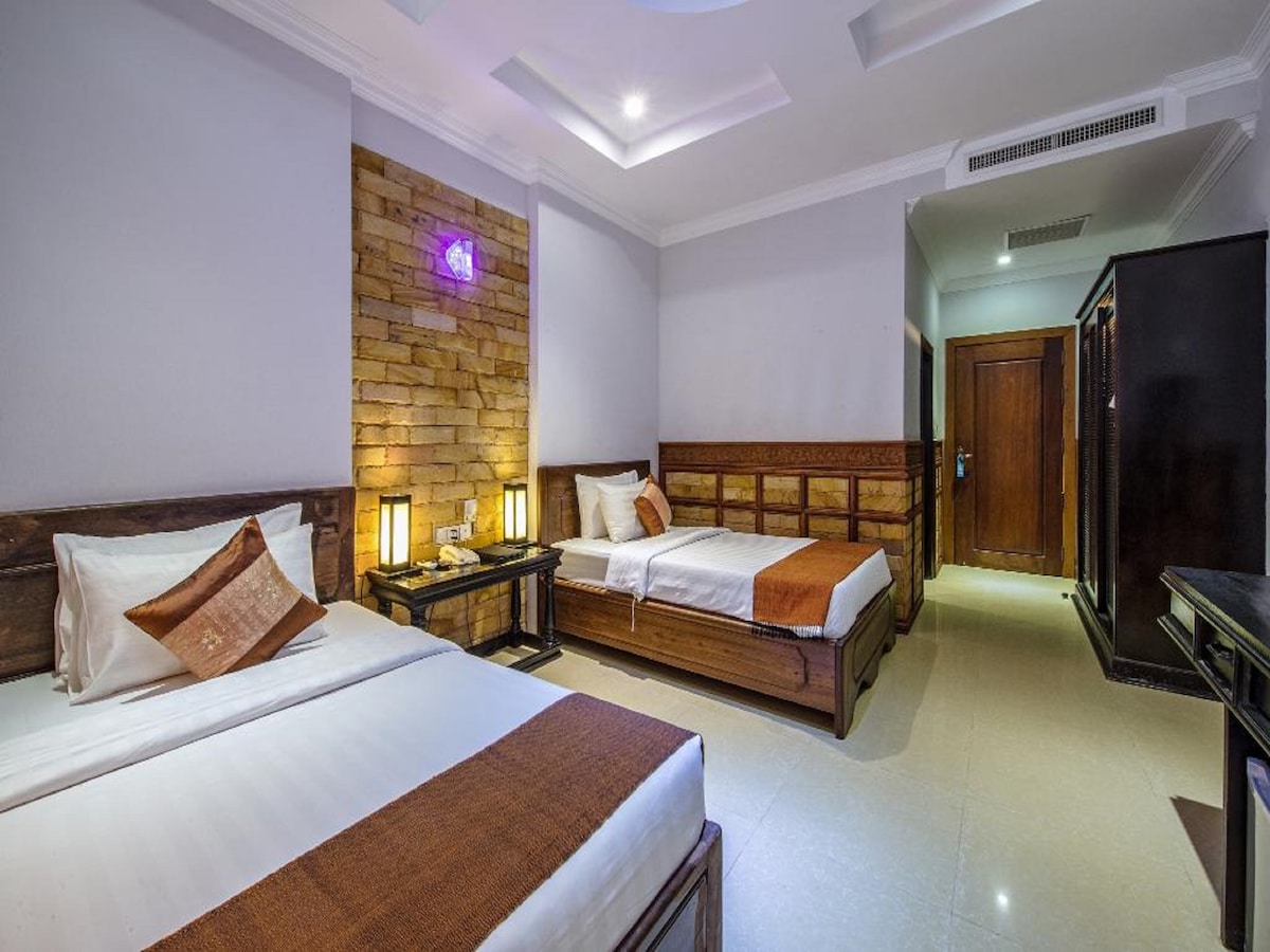 You’ll love the stylish decor of this charming place to stay. Enjoying the group stay of 4 or beyond in 2 twin rooms (with extra beds) at The Bliss Angkor, a luxury Boutique Villa consist of 12 breathtakingly stylish rooms, each room featured with modern facilities indulge in a good night sleep with blissfully comfortable bed and soft-as-silk hand linens and personalized pillows. Only 10 minutes drive to Angkor Wat, the world heritage site.