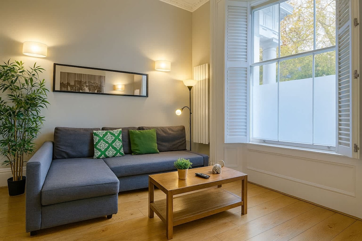 Un'oasi di tranquillità nel cuore di Notting Hill. In una posizione eccellente, a pochi minuti da Kensington Palace e Hyde Park, questo appartamento è elegante e luminoso. Perfetto per due ospiti. L'appartamento si trova al primo piano (corrispondente al secondo in alcuni paesi) e richiede l'uso di scale ripide, che possono essere impegnative per le persone con mobilità ridotta o per gli ospiti anziani. Ti preghiamo di tenerlo presente prima di prenotare.