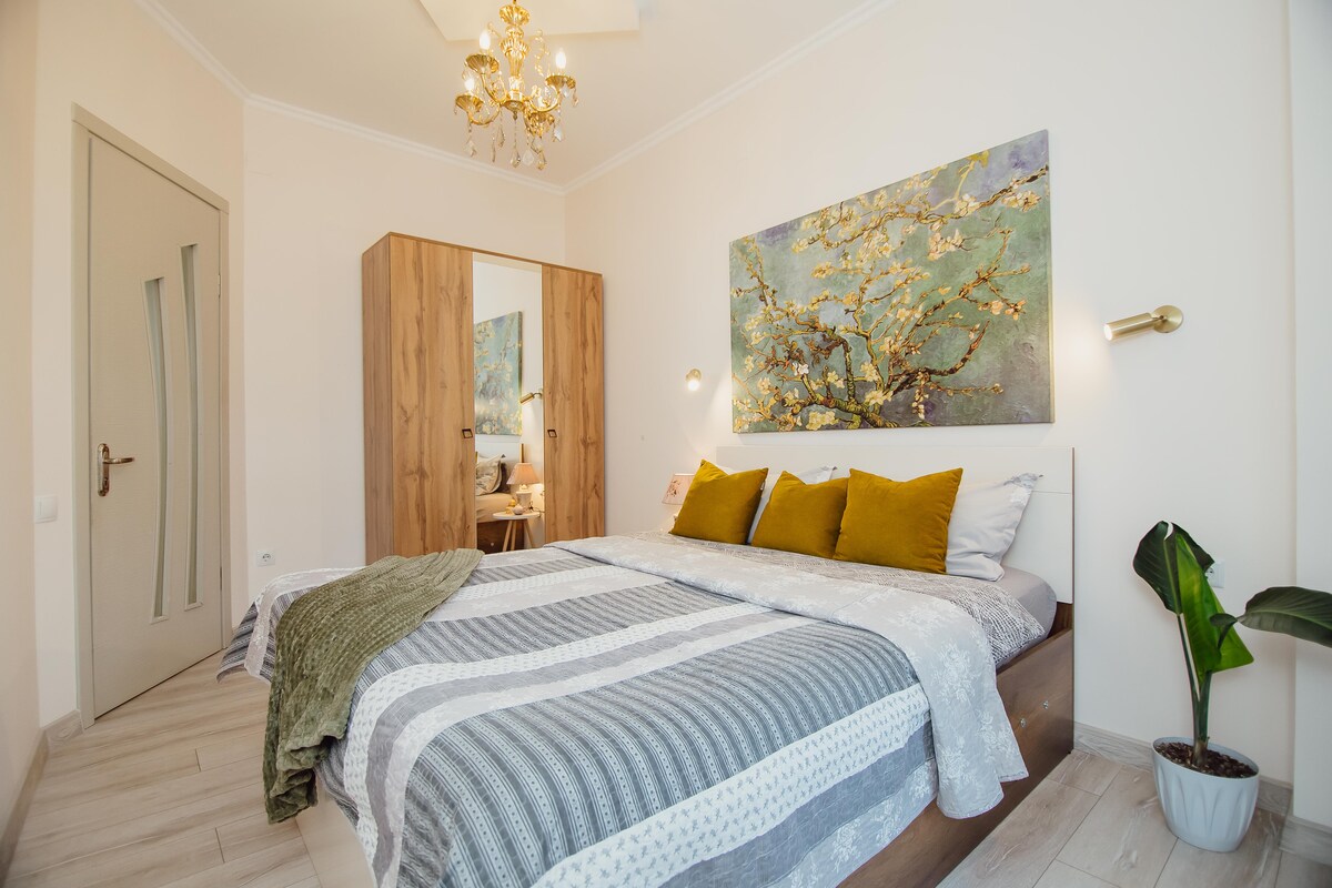 Moderno 1 camera da letto • Vista mare e città • Netflix • Wi-Fi veloce Elegante appartamento ad Alliance Palace (26° piano) con balcone panoramico, letto queen-size, divano letto, Smart TV (Netflix), cucina completamente attrezzata e pavimenti riscaldati. A soli 100 metri dalla spiaggia e dal lago. Perfetto per coppie, lavoratori da remoto e soggiorni con animali domestici.