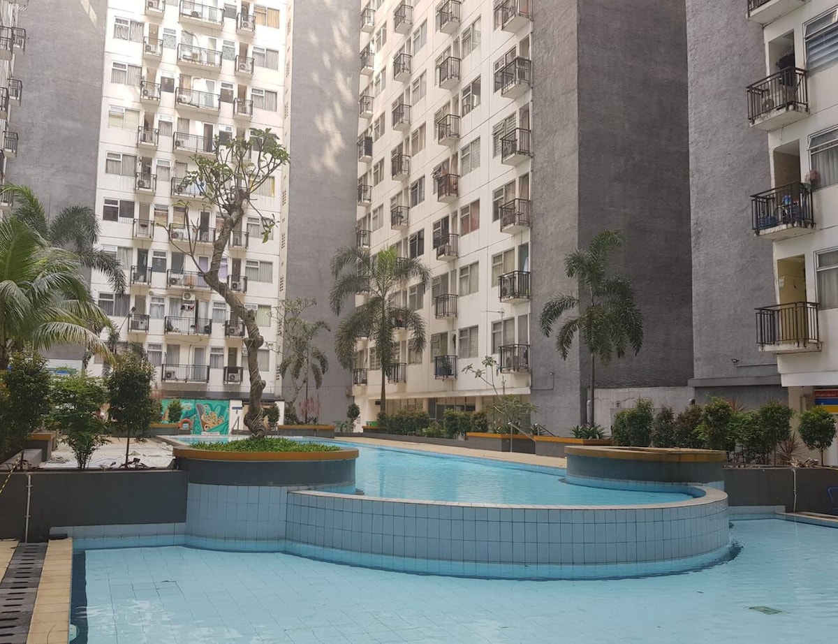Ti diamo il benvenuto a Imahku a Bandung, la prima scelta per una famiglia in famiglia! Siamo situati in Cihampelas Street, a soli 8 minuti a piedi dal Ciwalk Mall. Goditi la splendida vista sulla città al 20 ° piano dalla tua camera da letto e dal soggiorno. I nostri servizi 👇👇Goditi uno spazioso spazio di 36mq per ospitare un massimo di 4 persone! Camera da letto❥ principale con letto a due piazze e vista sulla foresta ❥ Soggiorno con divano letto, foresta e vista sulla città ❥ 2ª camera da letto con letto singolo ❥ Balcone con vista sulla foresta e sulla città ❥ Angolo cottura ❥ - -bagno
