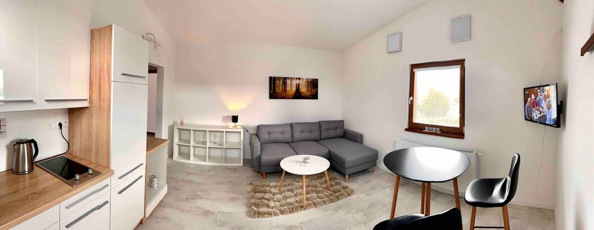 Monolocale con balcone e parcheggio gratuito in un parcheggio riservato proprio accanto alla casa. Appartamento di 30 m2 con vista sull'Austria e sul tramonto Sono ammessi anche gli animali. Dotazioni dell'appartamento: - 2x asciugamani grandi e 2x piccoli - gel doccia, shampoo, - detergenti - caffè, tè L'appartamento si trova all'inizio del quartiere di Bratislava Záhorská Bystrica. La disponibilità è a 2 minuti a piedi dalla fermata dell'autobus (Krče), 20 minuti in autobus dalla stazione principale, 15 minuti in auto