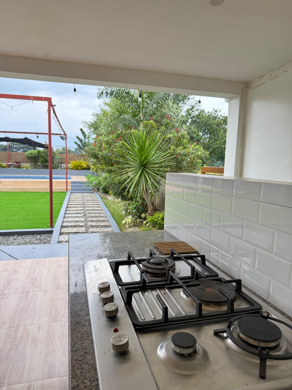 Caratteristiche della casa: • 3 camere da letto e 3 bagni, perfetti per famiglie o gruppi • Master's Suite con vasca idromassaggio in camera per 2 persone • Soggiorno con soffitti alti e design moderno di lusso • Ampio cortile anteriore recintato con parcheggio per 3 auto • Cucina esterna e zona pranzo per riunioni • Spazio di ritrovo sul balcone al 2° piano Ottima posizione: • A soli 30 minuti da SM Tarlac e Kart City • Solo 5-10 minuti da ristoranti e supermercati locali