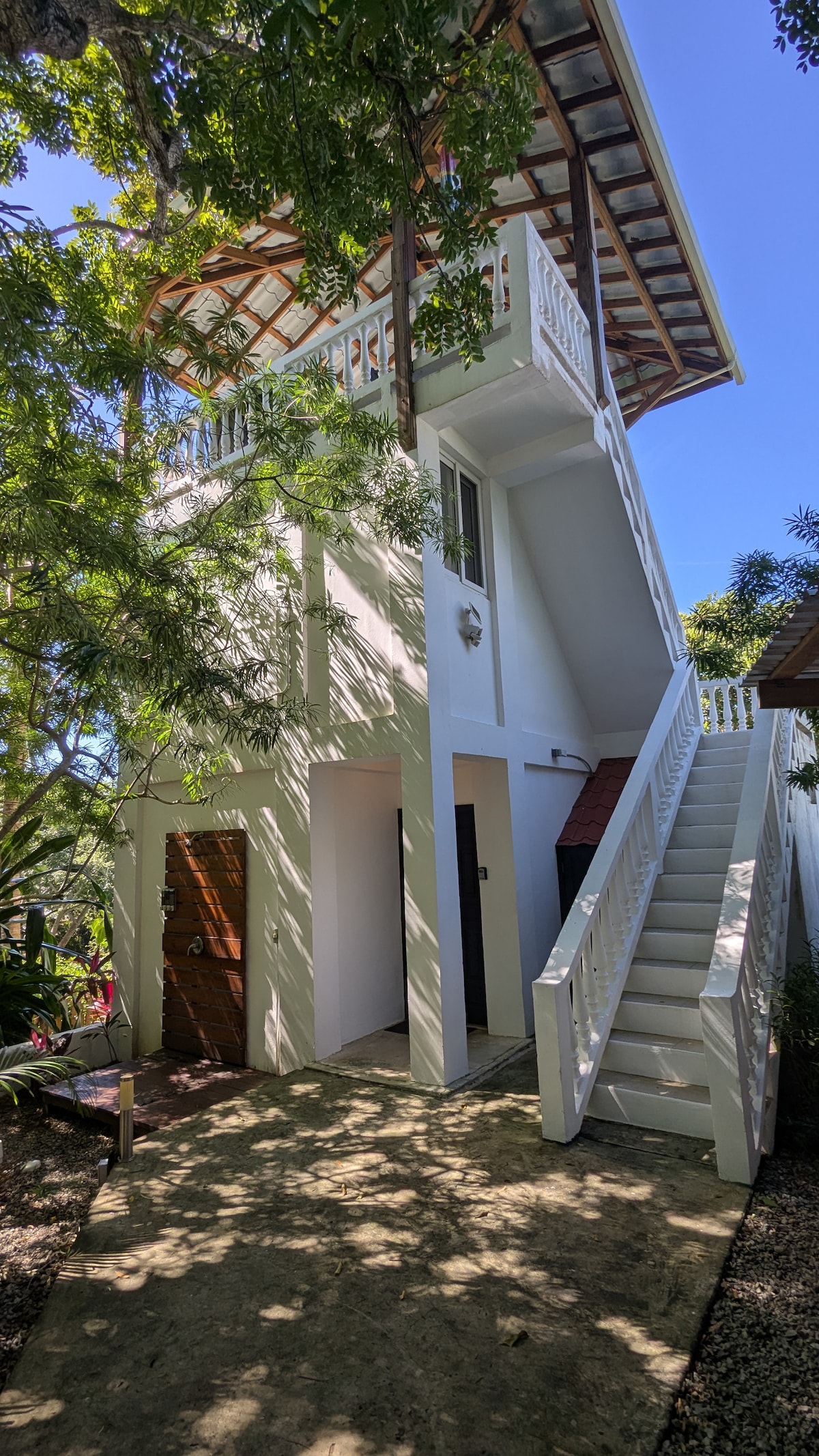 Rifugiati in questo tranquillo monolocale immerso in una comunità recintata. Dopo una giornata di snorkeling, immersioni o esplorazione della bellezza dell'isola, rilassati nel tuo spazio confortevole. Goditi tramonti mozzafiato dal patio sul tetto, perfetto per lo yoga, la meditazione o semplicemente per ammirare il panorama. A 5 minuti a piedi dall'oceano e a 7 minuti a piedi da Half Moon Bay. Opportunità di un ambiente tranquillo ed elegante. Goditi tramonti mozzafiato e pratica yoga o meditazione. Vicino a una serie di ristoranti, bar e negozi di immersioni.