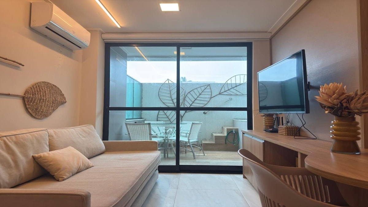 Appartamento moderno e accogliente a Maracaípe – Porto de Galinhas ✨ Goditi giornate incredibili in questo appartamento completo, a pochi metri dalla spiaggia di Maracaípe! Comporta fino a 4 persone. Il condominio dispone di ascensore, piscina al piano terra e una splendida piscina sul tetto con vista sul mare, perfetta per rilassarsi e godersi l'alba e il tramonto. 🌅 Ideale per coppie, famiglie o amici che cercano comfort, praticità e una posizione privilegiata a Porto de Galinhas. 🏖️