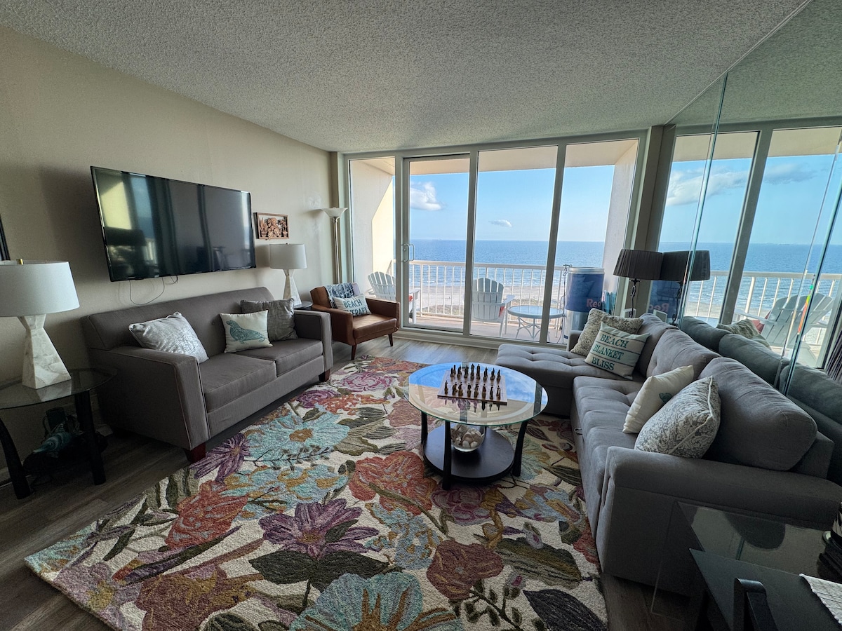 Splendido rifugio sul lungomare al 9° piano al The Galvestonian con vista panoramica sul Golfo. Questo appartamento con 2 camere da letto, recentemente ristrutturato, può ospitare comodamente 6 adulti e offre accesso diretto a East Beach. Goditi le finestre a tutta altezza, la cucina completamente attrezzata e i servizi di lusso del resort, tra cui una piscina riscaldata, una vasca idromassaggio e campi da tennis. Perfetto per una lussuosa vacanza a Galveston, che combina il relax in spiaggia con un facile accesso a The Strand.