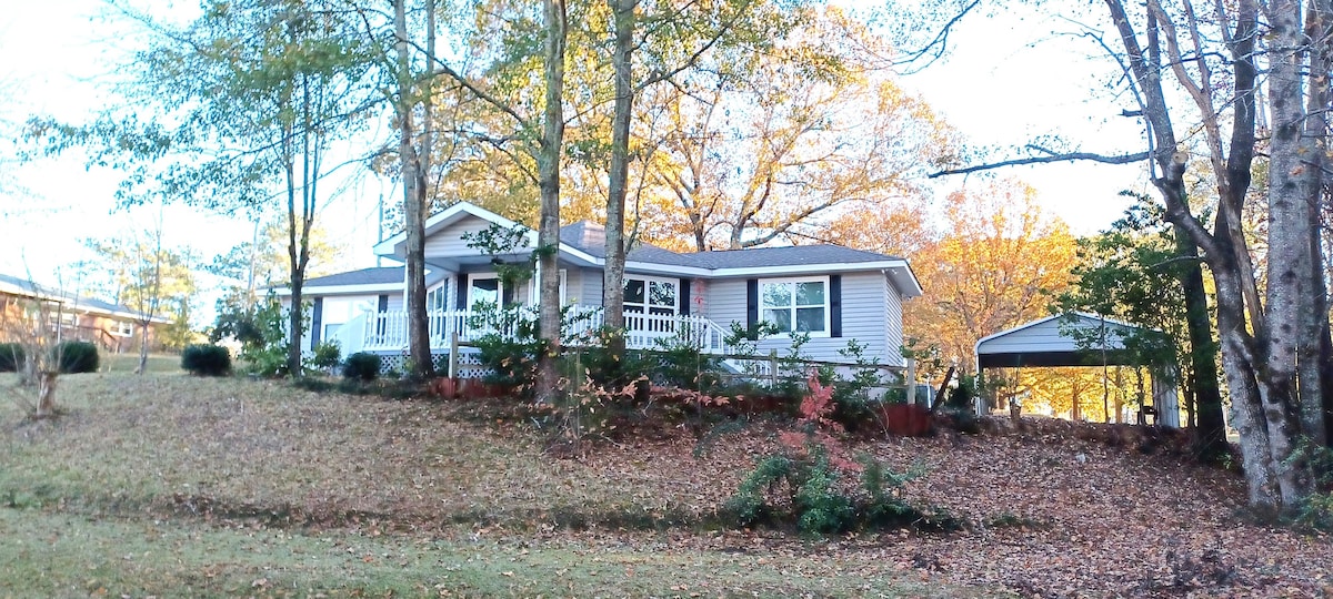 Rilassati con tutta la famiglia in questo alloggio tranquillo dove stare e pescare. Proprio dietro l'angolo dal centro di Opelika, a soli 10 minuti di auto da TigerTown, a 20 minuti dall'Università di Auburn e a 25 minuti da Columbus, in Georgia. Che tu sia in città a visitare la famiglia, venire per una partita di calcio o semplicemente in cerca di una vacanza sul lungomare, questo accogliente cottage è perfetto per te! Ti preghiamo di pescare solo davanti alla casa perché la proprietà circostante non si abbina a questa casa. Grazie e buon divertimento!