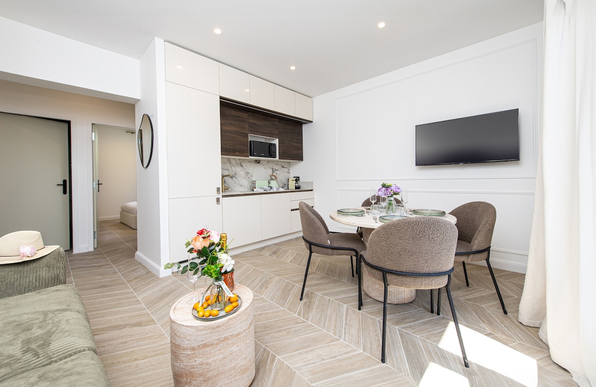 💫Elegante, climatizzato, completamente attrezzato, spazioso appartamento di 62 metri quadrati, con 2 camere da letto e 2 bagni, situato a 5 minuti a piedi dal Casinò di Monte Carlo! L'appartamento è stato completamente ristrutturato nel 2021 e arredato in stile moderno e contemporaneo. Con un buon spazio di archiviazione, è perfetto per coppie, amici, famiglie o lavoratori a distanza e viaggiatori d'affari. L'appartamento si trova a soli 5-7 minuti a piedi da piazza Monte Carlo 💫