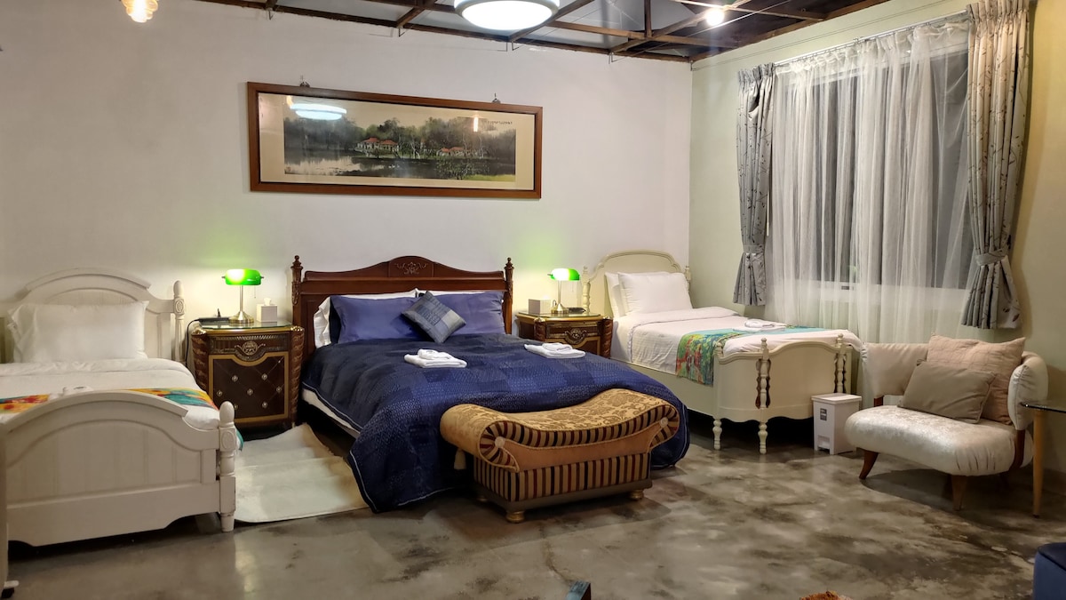 La casa è stata completata alla fine del 2024 con un diverso display classico europeo.È la "camera da letto n. 1" dell'intero edificio ed è una grande suite per 3 ~ 4 persone. Dai il benvenuto agli amici che sono già venuti a trovarti per scoprire la tua nuova casa! Questa casa è una casa costruita dai militari statunitensi durante l'era della guerra fredda a Taiwan. Si tratta di una tipica casa suburbana americana del sud, costruita negli anni '50 con un focolare, un cortile e grandi alberi. Siamo in una modalità vacanza-lavoro per aiutare a mantenere il facile lavoro quotidiano di una casa più vecchia, combinando esperienze coinvolgenti per avvicinare più amici ai beni culturali. La sezione “lavoro”, non c'è progetto certo, si può partecipare a un lavoro svolto da qualcun altro, o scegliere una cerimonia puramente di supporto per andare e venire ininterrottamente. La serie di bagni verdi rosa chiaro, tipo separato bagnato e asciutto, è un set doppio lavabo progettato su misura. Ci sono tende nella doccia e nei servizi igienici, mentre si affrettano, le persone possono fare il bagno, lavarsi il viso e andare in bagno allo stesso tempo. * Non sono ammesse fiamme libere in alcune parti della cucina, preparati con una macchina a vapore elettrica riscaldata, ecc., non è prevista una cottura formale. * Grandi nuove finestre e porte, montagne verdi ben ventilate all'aperto circondate da alberi verdi, aria fresca e a volte brezza fresca.Per non lasciare che l'unità di aria condizionata tolga l'opportunità alle persone di respirare aria fresca e il fino. Non abbiamo l'aria condizionata installata su suggerimento di un certo numero di ospiti che sono venuti prima della Mummia.Anche la TV non è fornita, ma è possibile utilizzare un proiettore. Il costo non include una colazione formale, ma fornirà piccoli pasti di base e noodle veloci, consentendo agli ospiti che arrivano la sera tardi con prelibatezze commoventi.