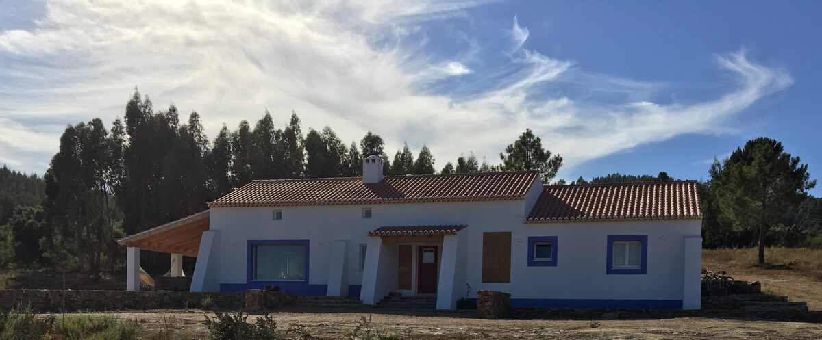 Tipica casa dell'Alentejo inserita in una montagna dell'Alentejo con 225 m2 e terreno di 14 mila metri, arredamento contemporaneo. Vista fantastica sulla serra. A 1 km dal pittoresco villaggio di San Luis, a 4 km dal fiume Mira, a 12 km dalla spiaggia e a 14 km da Vila N. de Milfontes. Potrete godere della veranda con vista e consumare i pasti all'aperto. Il patio dispone di zona lounge e barbecue. In estate o in inverno, ideale per rilassarsi e ricaricare le batterie. Qui potrete contemplare il cielo stellato e la natura.