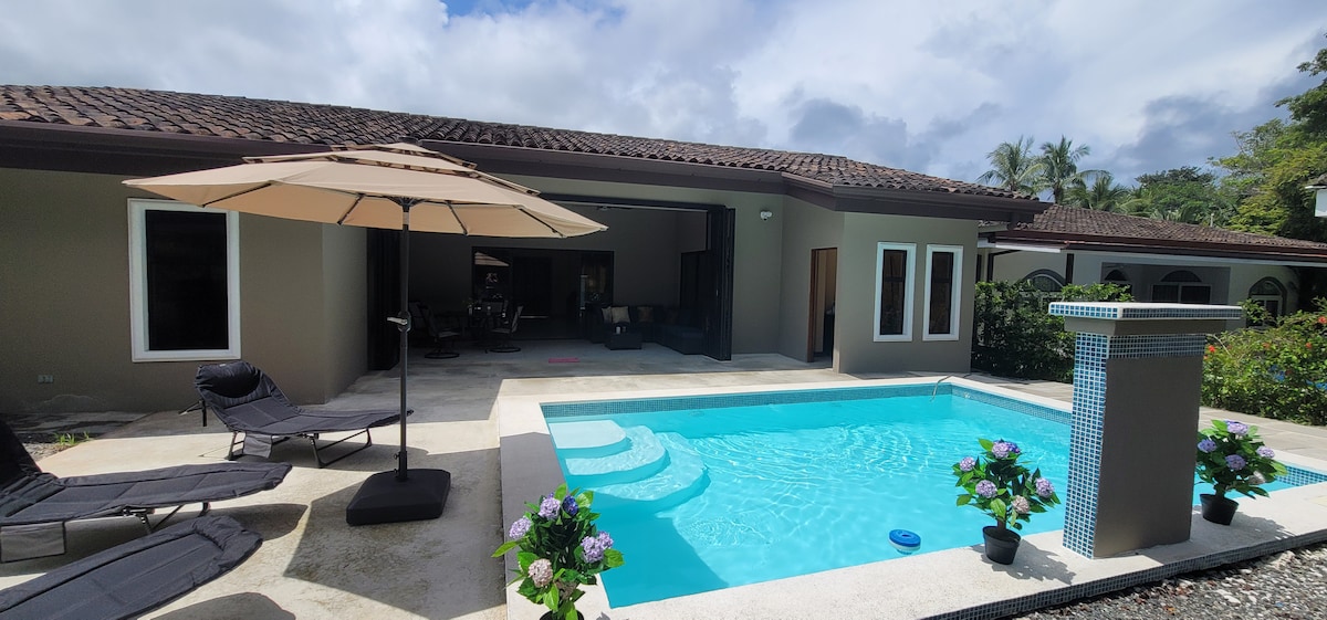 Jasper del Pacifico is a perfect choice to come and spend a quiet and great holiday. The house is located just a short walk to the beach where you can enjoy long walks and most of the time have a great view of the sunset. You can also walk to restaurants, spa, grocery store then come home to take a dip in your private pool or bbq in your outdoor living area. The open concept makes it a very spacious home. Monkeys, toucans, macaws & other wildlife have been spotted while sitting by our pool