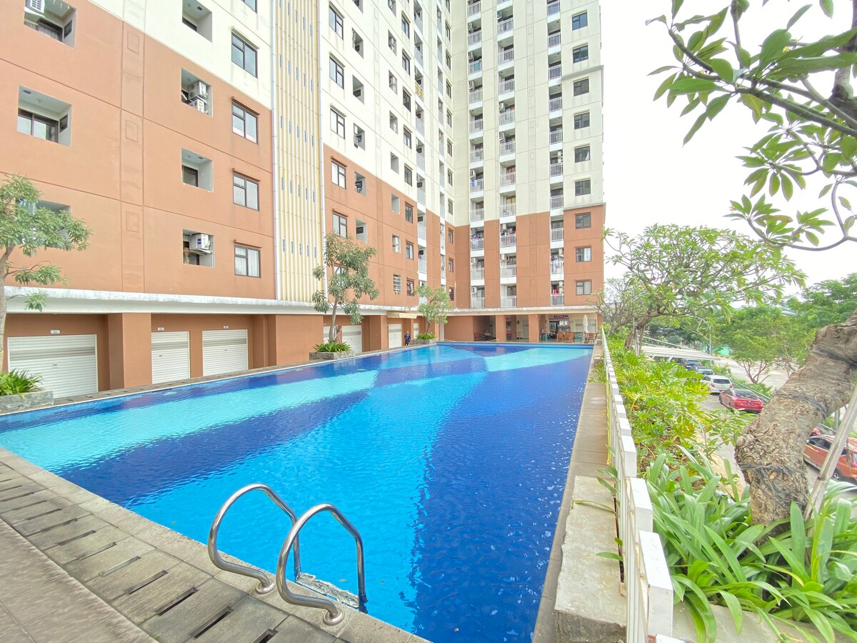 "Benvenuti nel nostro accogliente appartamento con 2 camere da letto a Bekasi! Goditi una cucina ben attrezzata, un accogliente soggiorno e una vista panoramica dal balcone. Immergiti nella piscina olimpionica, mantieniti in forma nella palestra all'aperto o fai jogging lungo la pista. Con sicurezza 24 ore su 24, 7 giorni su 7 e una scheda di accesso, la tua sicurezza è la nostra priorità. A 5 minuti a piedi da caffetterie, ristoranti e centri commerciali. Sono disponibili wifi, Netflix e scaldabagno. Che sia per lavoro o per piacere, il nostro appartamento garantisce un soggiorno indimenticabile. Prenota subito e scopri il fascino di Bekasi!