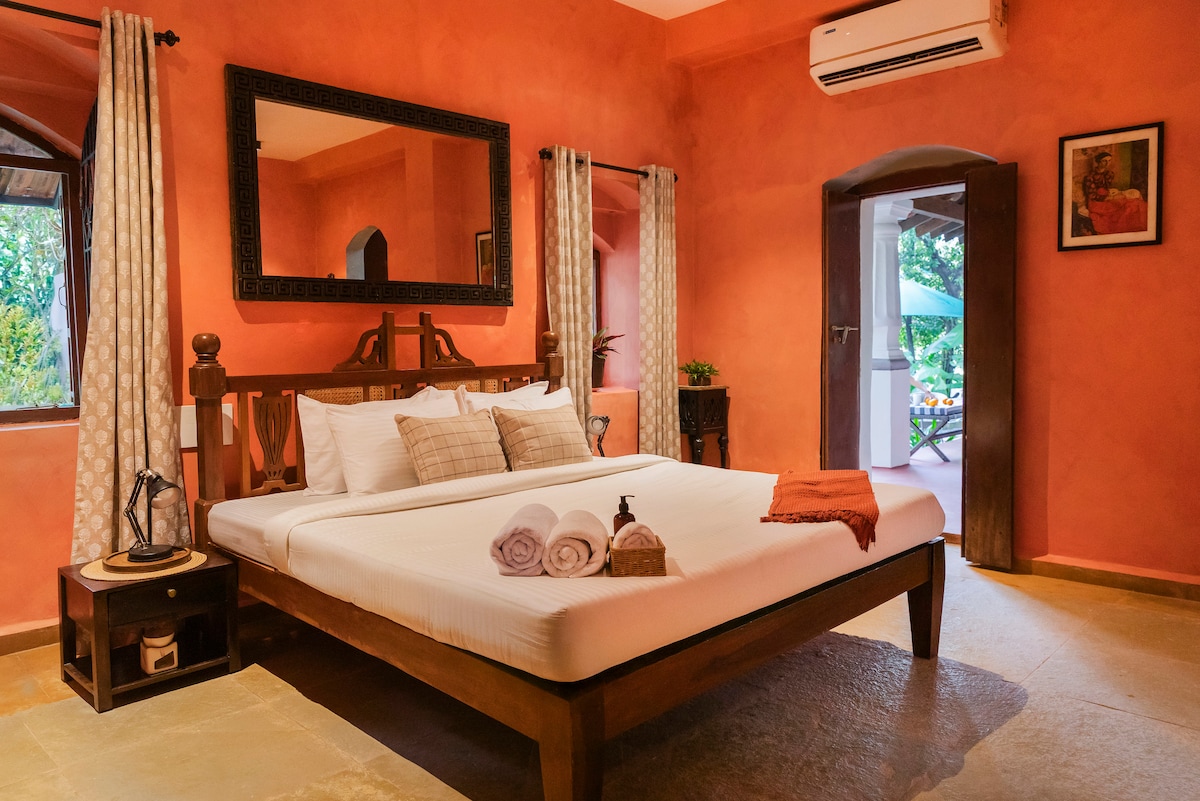Casa Desa Monteiro, una casa storica portoghese di Goa di 140 anni, restaurata per fondere il fascino del vecchio mondo con il lusso moderno, situata sulla bellissima isola di Divar a Goa. Mentre attraversi l'iconico traghetto blu sul fiume Mandovi, dai un'occhiata ai monumenti storici e lasciati trasportare in un paradiso sereno circondato da lussureggianti campi verdi. Questa struttura, che ha aperto di recente, è una gemma nascosta che ti riporterà indietro nel tempo e ti offrirà una fuga rilassante dalla frenesia della vita quotidiana.