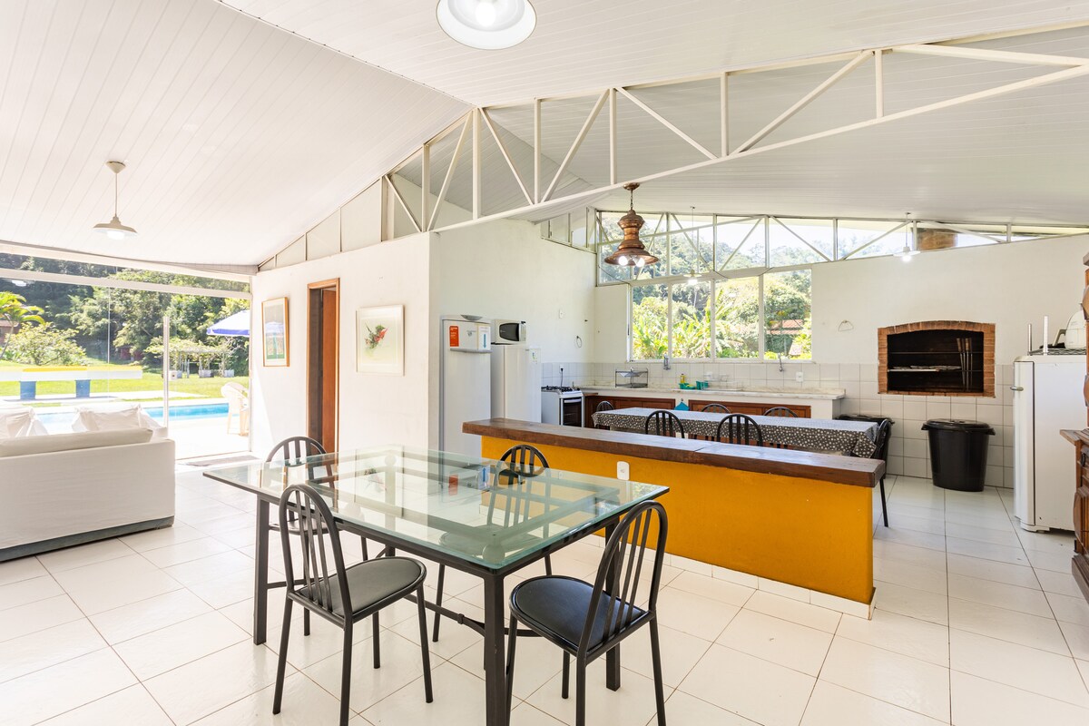 Il luogo perfetto per chi cerca la tranquillità e la pace della campagna! La casa è composta da 4 ampie suite, 5 cucine e 5 bagni! Escursioni, amaca, altalena, pallavolo e altro ancora! Tutte le suite sono dotate di forno a microonde, frigorifero, proiettore o TV con accesso a Internet, asciugacapelli, ventilatore, biancheria da letto e da bagno, pentole e padelle e Wi-Fi. Strada tranquilla, siamo a 2 minuti di auto da mercati, farmacie, ristoranti e un bancomat. A 18 minuti da Terra dos Dinos de Miguel Pereira e a 2 ore da Rio de Janeiro.