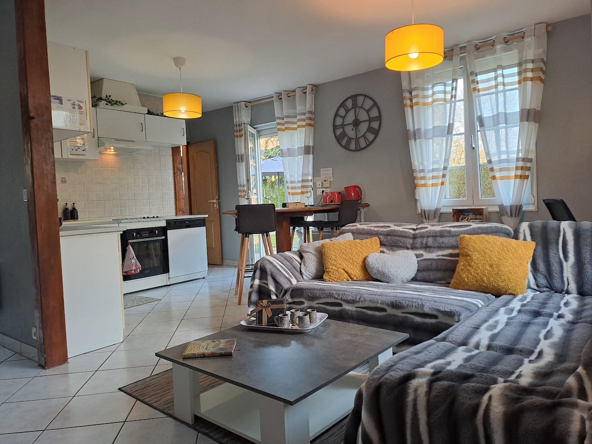 Ai margini di un piccolo ruscello e in un ambiente bucolico, due camere da letto, un bagno (sauna a pagamento), una zona pranzo con macchina per il caffè, bollitore, tè, al 2° piano. Il giardino vi accoglie per prendere un piccolo caffè, un tè, pranzare o mangiare, ma soprattutto sognare e stupirvi. WC ospiti disponibile. Sala relax al piano terra (lettura, musica, meditazione, yoga). Laboratorio di pittura con possibilità di creare. Posto macchina gratuito per più auto accanto alla casa.