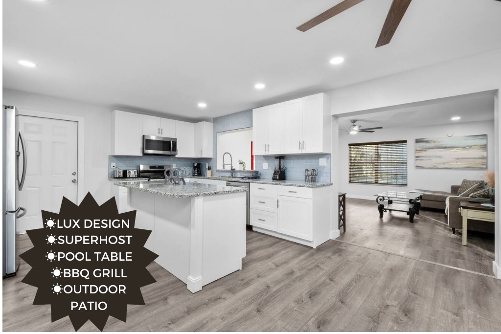 Relax in your private saltwater pool oasis, minutes from UF & downtown Gainesville. 🏊 Saltwater Pool Oasis – Commercial-size pool with shade sail & remodeled deck. 🔥 Built-in Firepit + Pergola – Picnic table & bistro lights for cozy nights. 🎮 Game Room Fun – 500+ arcade games, foosball & board games. 📍 Prime Location – Walk to Publix & restaurants, just 1 mile to UF. 🚗 Free parking & ⚡ fast WiFi for work, study, or streaming. ✨ Perfect for families, groups & game-day stays in Gainesville!