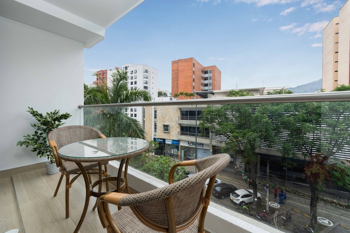 Spectacular apartment in one of the best neighborhoods in Cali with a panoramic view of Cristo Rey, very bright - Free luggage storage service Very comfortable room with a queen bed, a spacious balcony with an living room, a work space, a full kitchen, and a dining bar. The building has a coworking area, jacuzzis, a BBQ terrace, and an outdoor bar. Close to shopping centers, clinics, a dog park, the Granada neighborhood, El Peñón, and the Pascual Guerrero stadium, El perro park and much more!