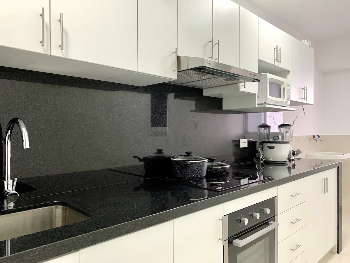 Moderno appartamento completamente arredato, ideale per lunghi soggiorni. Dispone di Wi-Fi ad alta velocità, Smart TV da 65 pollici con Netflix e Disney+, cucina completamente attrezzata con macchina per il caffè espresso e filtro per l'acqua, lavatrice-asciugatrice, letto matrimoniale e balcone. L'edificio offre una piscina, una palestra e un'area di coworking. Self check-in 24 ore su 24, 7 giorni su 7, smartkey, parcheggio gratuito e sicurezza 24 ore su 24. Situato in posizione strategica a San Miguel, vicino a università e centri commerciali, e a meno di 20 minuti dall'aeroporto.