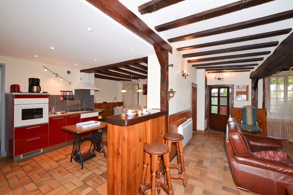 Una casa del XVII secolo, calda e confortevole, che può ospitare fino a otto persone. Il fascino autentico, la campagna, il giardino, la piscina privata (sotto protezione video) vi rigenereranno in un ambiente rilassante (piscina a partire dal 15 maggio a seconda del tempo). Il ristorante (a pochi metri) situato in un giardino d’inverno in stile anni '30 con la sua cucina tradizionale francese.