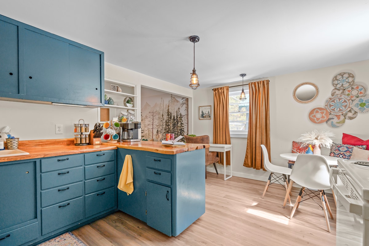 **INSTALLATO DI RECENTE! ** La grotta con spa e sauna è pronta per la tua romantica vacanza a Bend! Questo bungalow indipendente, tranquillo, immerso nel verde e in posizione centrale, si trova a pochi passi dal sentiero del fiume Deschutes e a breve distanza a piedi dal Mill District e dall'Hayden Amphitheater. Dispone di un comodo letto king-size con biancheria da letto in piuma d'oca e cuscini di alta qualità, parcheggio gratuito dedicato (più auto o piccoli camper), zona pranzo all'aperto e patio, lavatrice/asciugatrice e una cucina completamente fornita di tutto il necessario per il divertimento e il relax in tutte le stagioni!