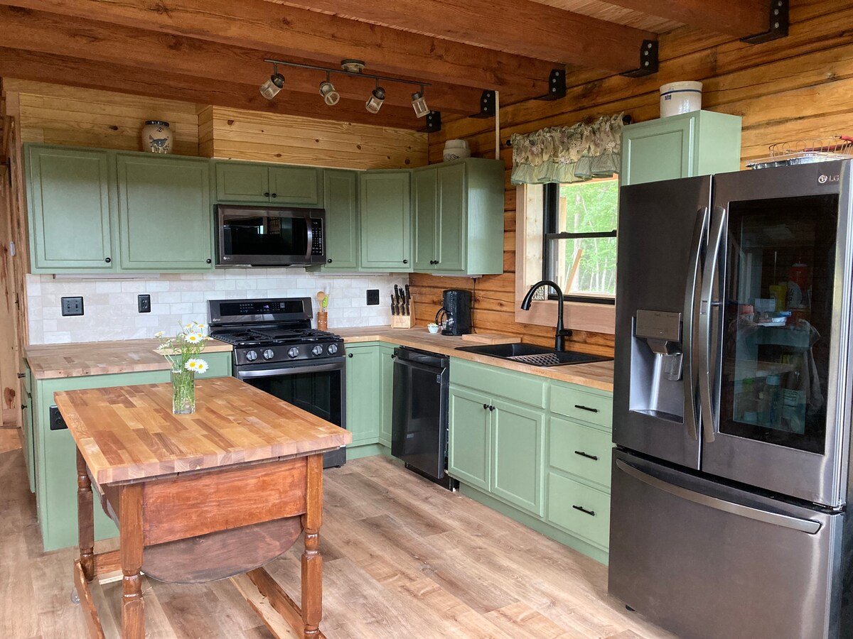 This spacious cabin has 1 bedroom with a comfortable, king sized bed, a queen sized hide a bed couch in living room, and a well equipped kitchen. The outside sitting area is a peaceful oasis with the view of the cattle and horse farm. An outside outlet is available for charging your boat. Bike, walking trails, and a marina are all within 1. 4 miles. Downtown shopping area is 5 minutes away. Roku and wifi are available.