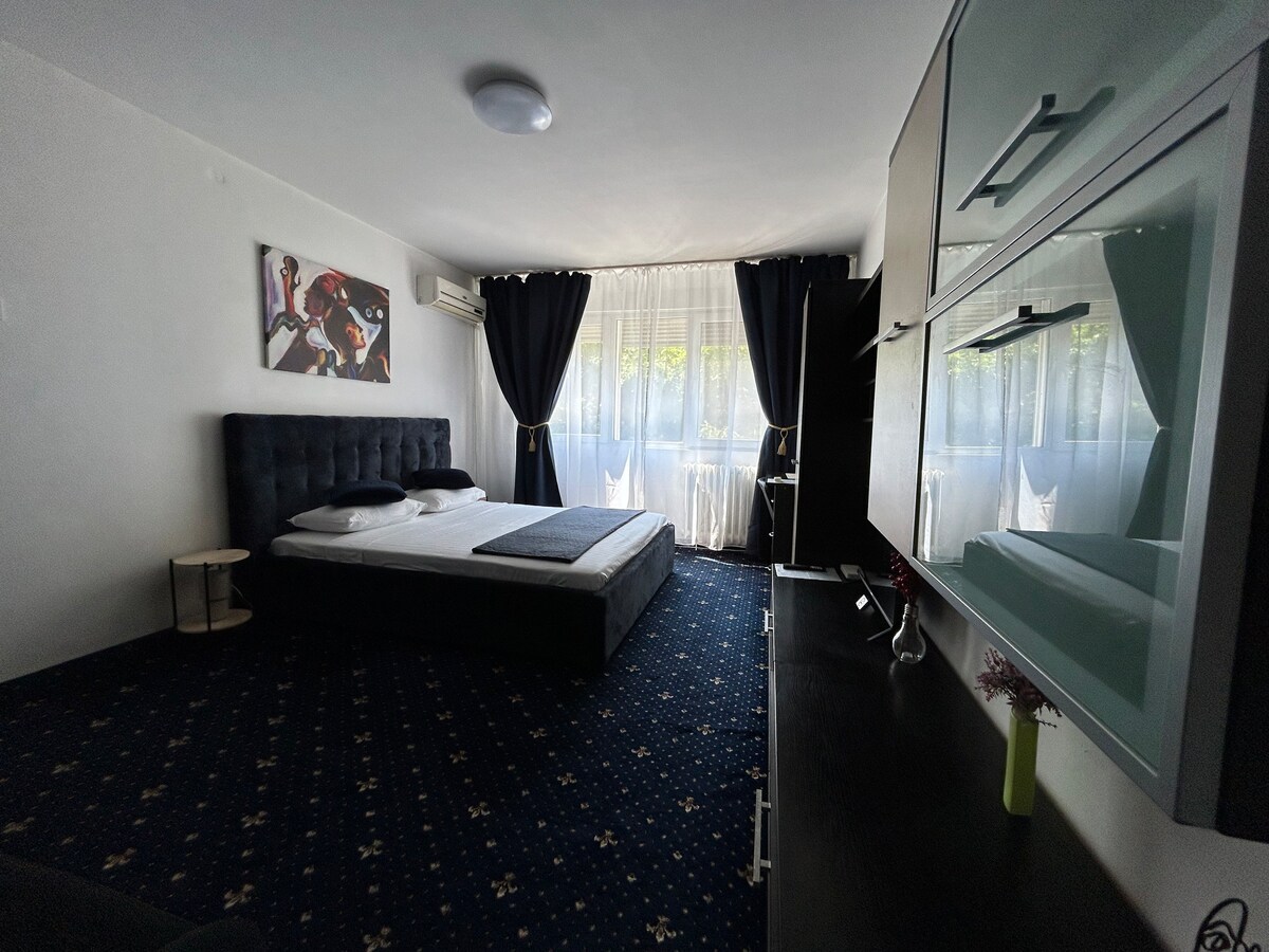 Fully air-conditioned apartment finished to an super luxurious standard in a new residential block, with top of the range comforts/appliances including tumble dryer. You Enjoy our amazing walk-in rain shower! Located 2 minutes away from the Dimitrie Leonida Metro Station which is on the most popular blue line - avoid the notorious Bucharest traffic jams and still be in the city center within 15 min. FREE PARKING in block for you car Enjoy 5 star luxury without paying for an overpriced location.