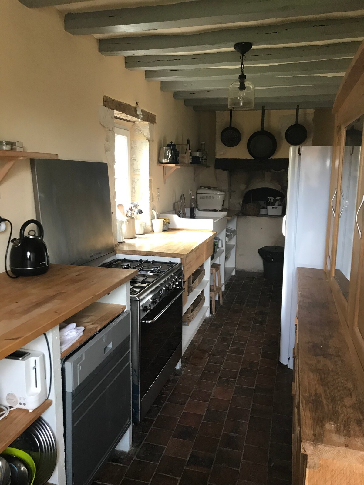 La nostra casa si trova nel cuore del Perche e presenta un'architettura tipica del Perche e risale alla fine del XIX secolo. Recentemente ristrutturata, è molto luminosa e piena di fascino con le sue pareti in pietra e travi a vista. Situata nel centro del paese, godiamo tuttavia di una vista aperta su un frutteto. Tutta in altezza, è organizzata su 3 livelli e dispone di un piccolo giardino con piscina e barbecue nonché di un cortile interno.