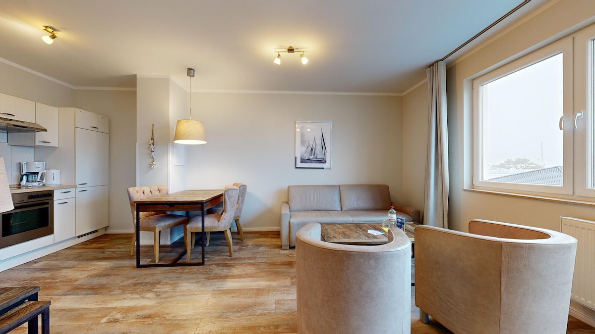 Elegante appartamento sul mare con sauna e laghetto balneabile 🌊1. Posizione sul mare 🛋️ mobili da tavolo su misura 🔥 Riscaldamento a pavimento e pavimento in vinile 🛌 Letti a molle (180x200) 📺 2 smart TV nel soggiorno e nella camera da letto 🚿 Doccia Raindance a pavimento e doppio lavabo 💇♀️ Asciugacapelli e piastra Cucina 🍽️ completamente attrezzata: macchina per caffè espresso e filtro, montalatte, forno a microonde 🧳 Pacchetto biancheria, caffè, tè, prodotti per la cura incl. parcheggio 🚗 gratuito 🌙 Protezione solare e oscurante di alta qualità 📶 Wi-Fi incluso