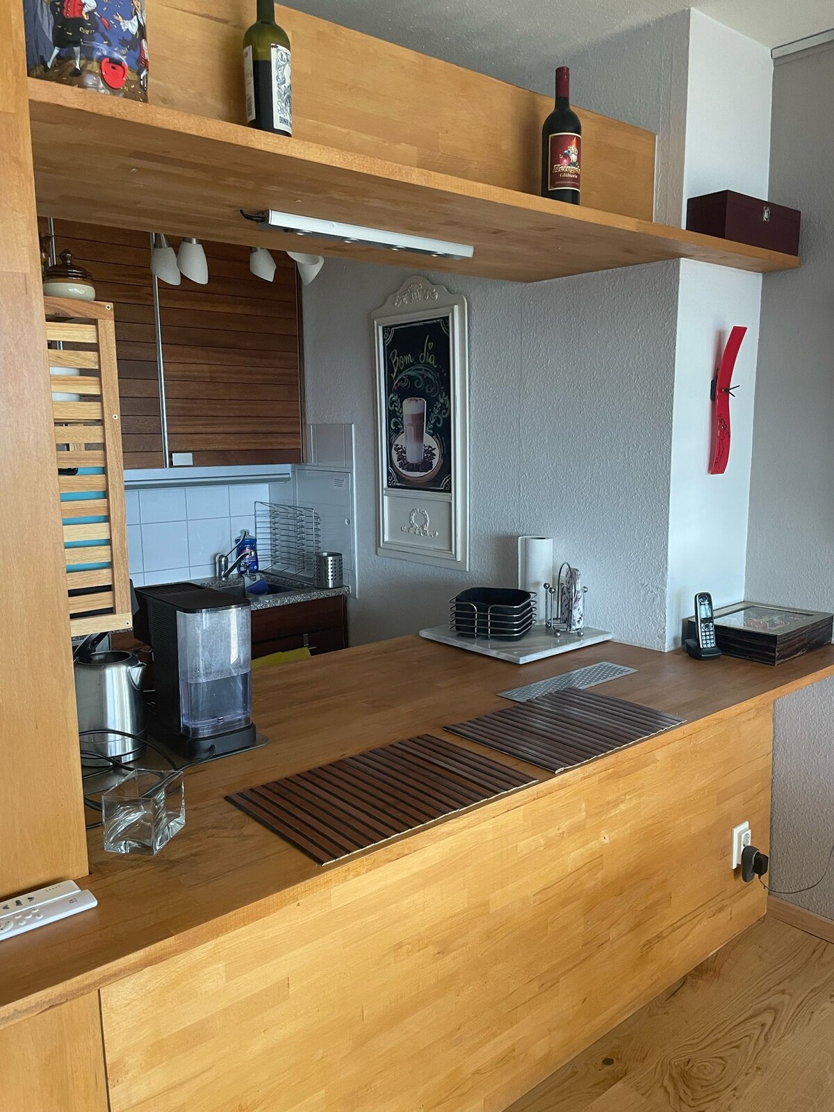 Appartamento molto bello con balcone ben attrezzato nel centro di Colonia vicino a Barbarossaplatz. Di fronte all'edificio troverai una fermata di autobus (autobus e tram). L'edificio offre bar e ristoranti e nelle vicinanze troverai un supermercato che apre fino a mezzanotte, bancomat e altri ristoranti. Un moderno ascensore ti porta al 27 ° piano e dall'appartamento avrai una splendida vista su Colonia. Una bella culla può essere trasportata senza costi aggiuntivi. Posto auto incluso.