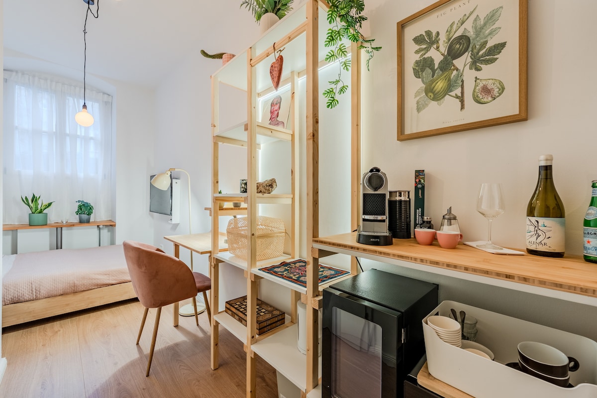 Goditi un'esperienza elegante in questo alloggio situato in posizione centrale nel cuore di Kreuzberg. Circondato da ottimi ristoranti, caffè, bar e a pochi passi dal Landwherkanal. Piccolo loft unico con arte, bellissimo arredamento e ambiente emozionante. L'appartamento è situato al 2° piano, non c'è ascensore nell'edificio.