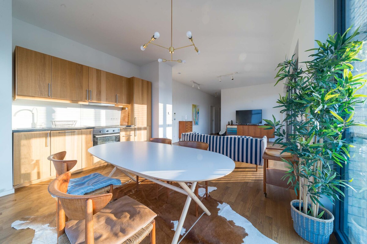 Ci siamo impegnati a sviluppare appartamenti di design moderni che soddisfino tutte le esigenze odierne. Con questo nuovo ed esclusivo appartamento a Berlino, vi offriamo un'atmosfera di benessere sia per brevi viaggi in famiglia in coppia, con i vostri bambini, sia per viaggi di lavoro di diverse settimane. Una nuova casa moderna che diventa immediatamente il centro del vostro viaggio con l'arrivo e vi dà riposo e forza per un emozionante soggiorno a Berlino.