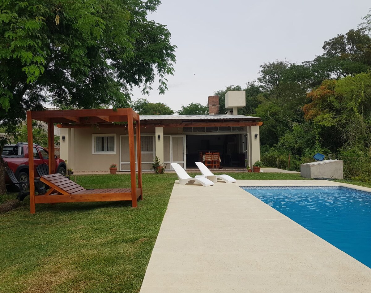 Alojamiento para 12 personas, amplio parque de 2500m2 , totalmente comodo y seguro, 4 habitaciones con AA y tv digital hd, piscina, parrilla y fogonero; ubicado en barrio pescadores a 200mtrs del río. Ideal para descansar en familia.