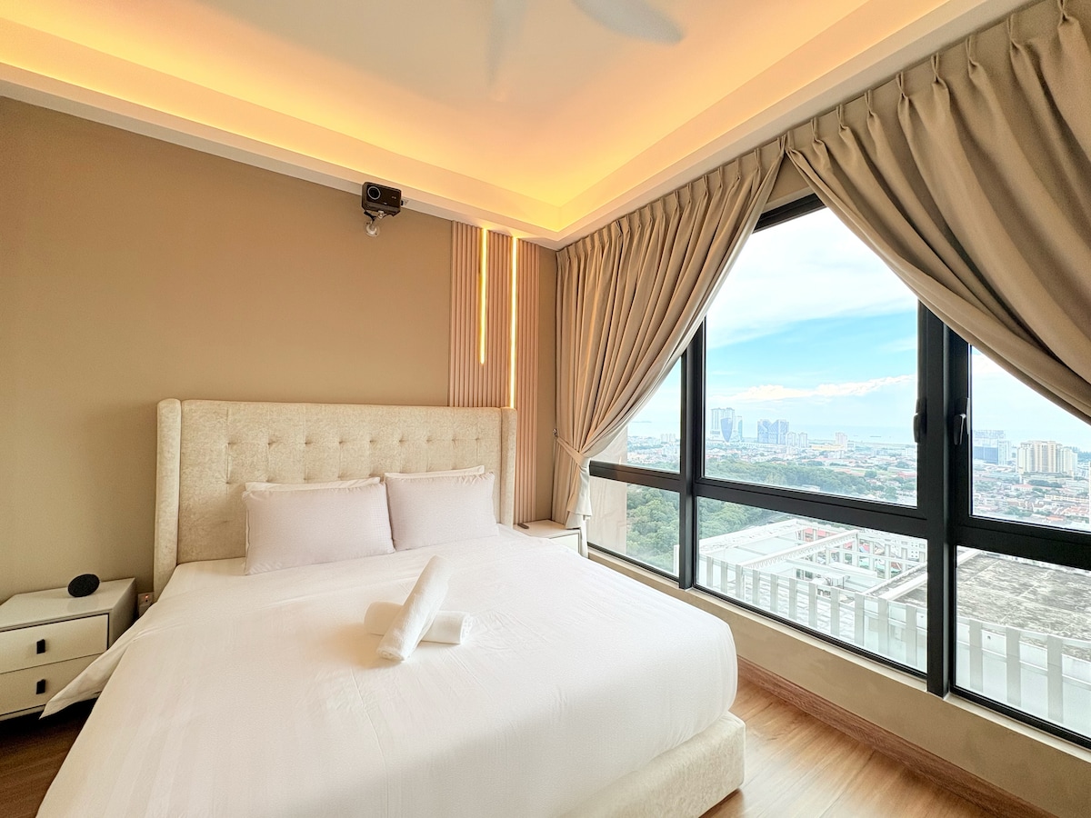 La nostra unità presso The Apple Melaka offre un soggiorno moderno con il comfort di un sistema smart home, che consente di controllare facilmente gli elettrodomestici con i comandi vocali. Situato a solo 1 km da Jonker Street, avrai un rapido accesso al cibo locale, ai trasporti e alla vivace atmosfera della città, pur godendo di una tranquilla fuga sopra la città. Perfetta per le coppie, l'unità dispone di un accogliente letto king-size per un soggiorno riposante. Prova la comodità di una casa intelligente nel cuore di Melaka! ✨