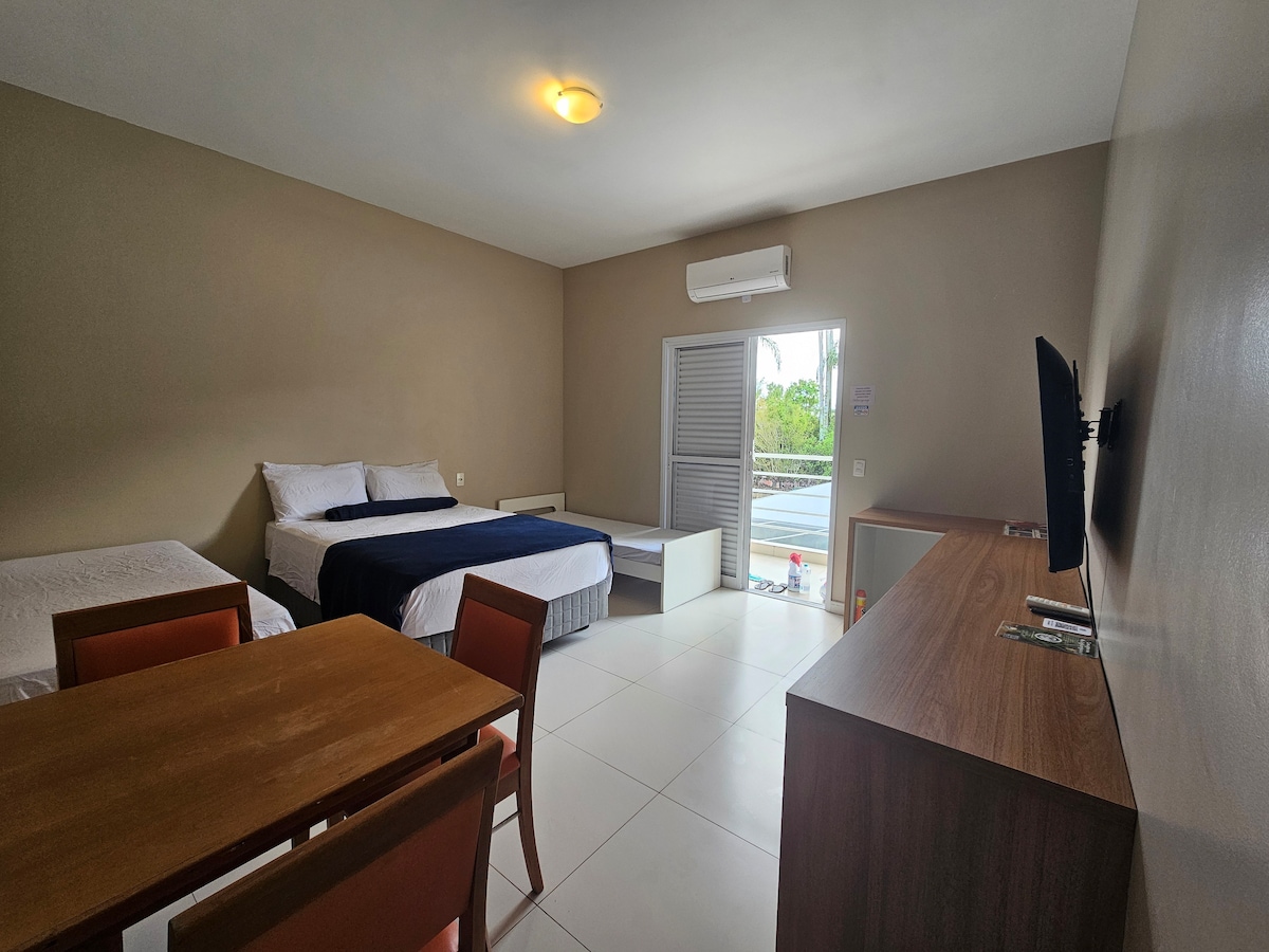Rilassati a Bertioga! La nostra suite privata, a pochi metri dal SESC, è l'ideale per il tuo riposo. Offre aria condizionata, TV in streaming, letto matrimoniale, letto singolo, materasso extra, minibar, forno a microonde e bagno con doccia Loren Shower Ultra. Per la tua comodità, siamo a 230 m dalla Riserva SESC, a 950 m dalla spiaggia di Enseada e a 2 km dal centro, vicino a una panetteria, una farmacia e ristoranti. Comfort e praticità in un unico luogo!