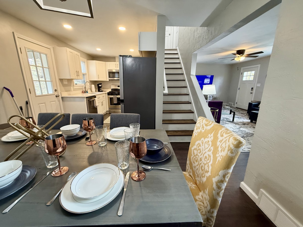 *Solo prenotazioni fuori città per favore * Casa con 2 camere da letto allegra ed elegante, a soli 15 minuti dal centro di Pittsburgh! Situato in un quartiere incantevole a pochi passi da negozi, ristoranti, luoghi di culto, Mt. Campo da golf in Libano e un negozio di alimentari. La casa inoltre si trova a soli 5 minuti a piedi dalla linea T che rende facile entrare e uscire dal centro di Pittsburgh! 1 letto king-size 1 letto matrimoniale Divano letto queen-size _count} Smart TV _count} Aria condizionata _count} Parcheggio fuori strada _count} Smart lock