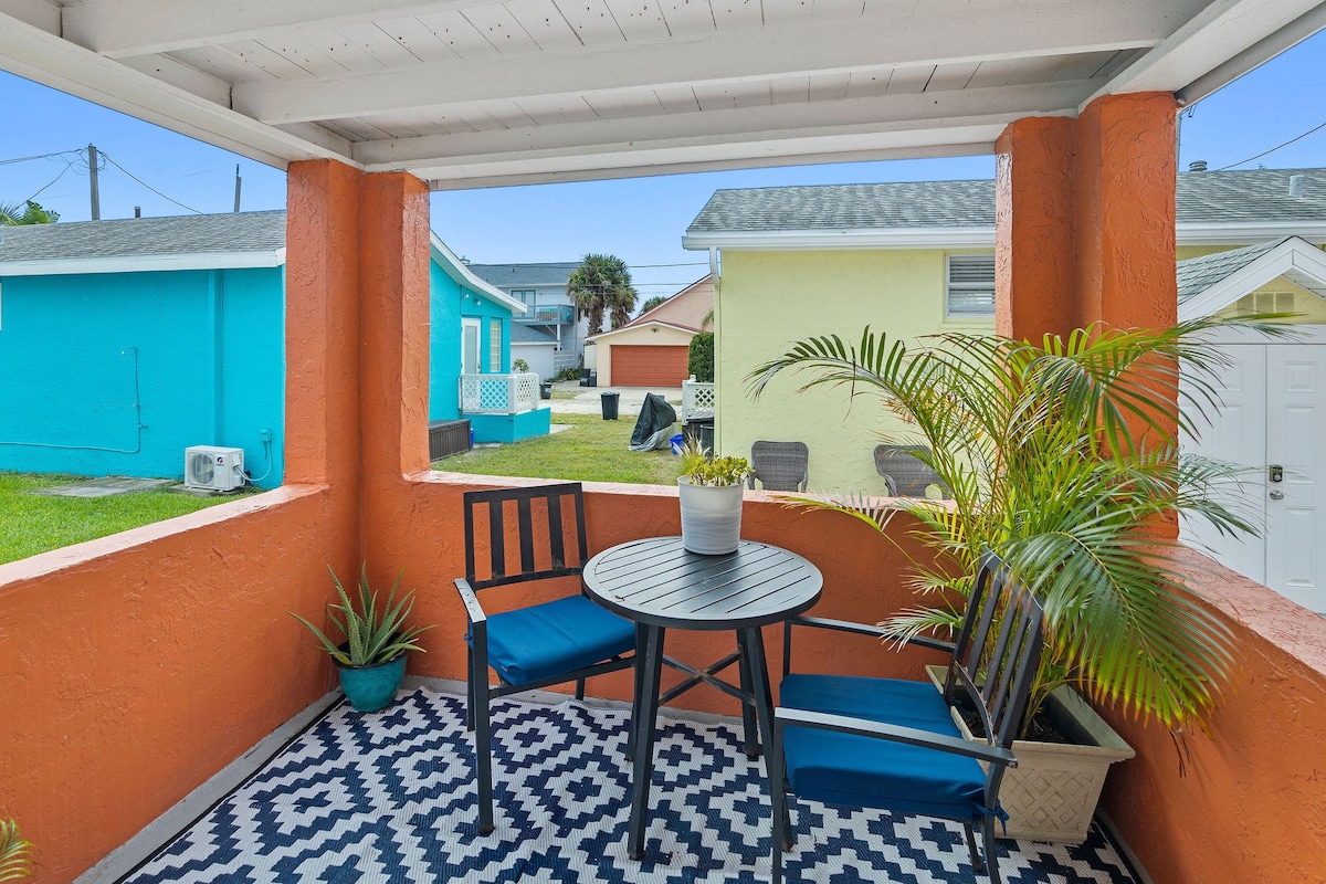 Historic beachfront apartment offers breathtaking views of New Smyrna. Enjoy this Cape Cod style home which has been divided into 3 units with a shared deck, fire pit and amenities. This upstairs "Surf Suite" boasts a king size bed, comfy pull out couch and the best view in town. Located in the heart of New Smryna, the Surf Suite is within walking distance to several restaurants, bars and shops. Enjoy the feel of "Old Florida" and the luxury of a truly beachfront experience.