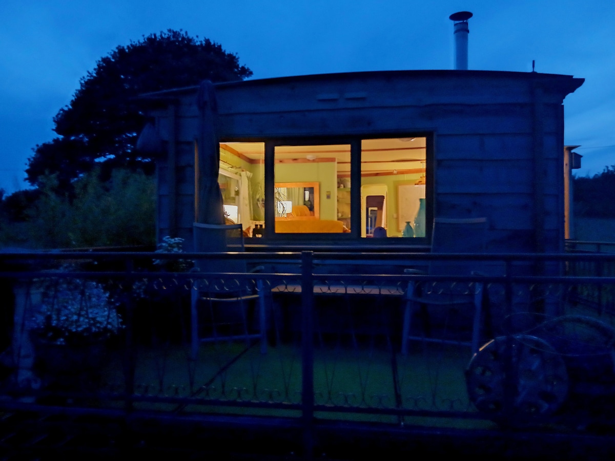 VOTATO COME UNO DEI MIGLIORI 8 AIRBNB IN GALLES DA KINGFISHER GUIDES Posizione rurale appartata, uno chalet a un piano con salotto/sala da pranzo a pianta aperta e stufa a legna. Porte a soffietto sulla terrazza e sul lago. Una TV di dimensioni cinematografiche con console di gioco/lettore Blu Ray. La camera da letto è dotata di un letto matrimoniale grande. Cucina completamente attrezzata. Il bagno dispone di una doccia spaziosa. Caratteristiche: privacy, stufa a legna, posizione fronte lago, parcheggio fuori strada, non fumatori, ponte sopra il lago, tavolo e sedie fronte lago, barbecue, wifi superveloce, rete mobile 4G.