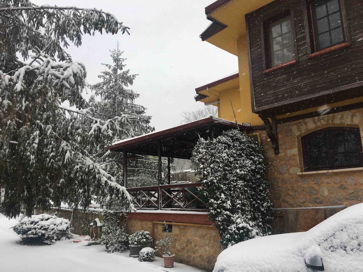 - Situato su un terreno di 4 acri dove puoi stare da solo con la natura, questo cottage di 5 stanze è progettato per chi vuole allontanarsi dalla vita di città e fare un respiro profondo. - Caminetto e barbecue - Sdraiati sull'erba, leggi un libro sotto gli alberi, fai yoga all'aperto o semplicemente goditi il silenzio. - Campo da tennis privato. - Perfetto per yoga, meditazione o semplicemente per godersi il silenzio. - A soli 30 minuti dal centro di Istanbul.