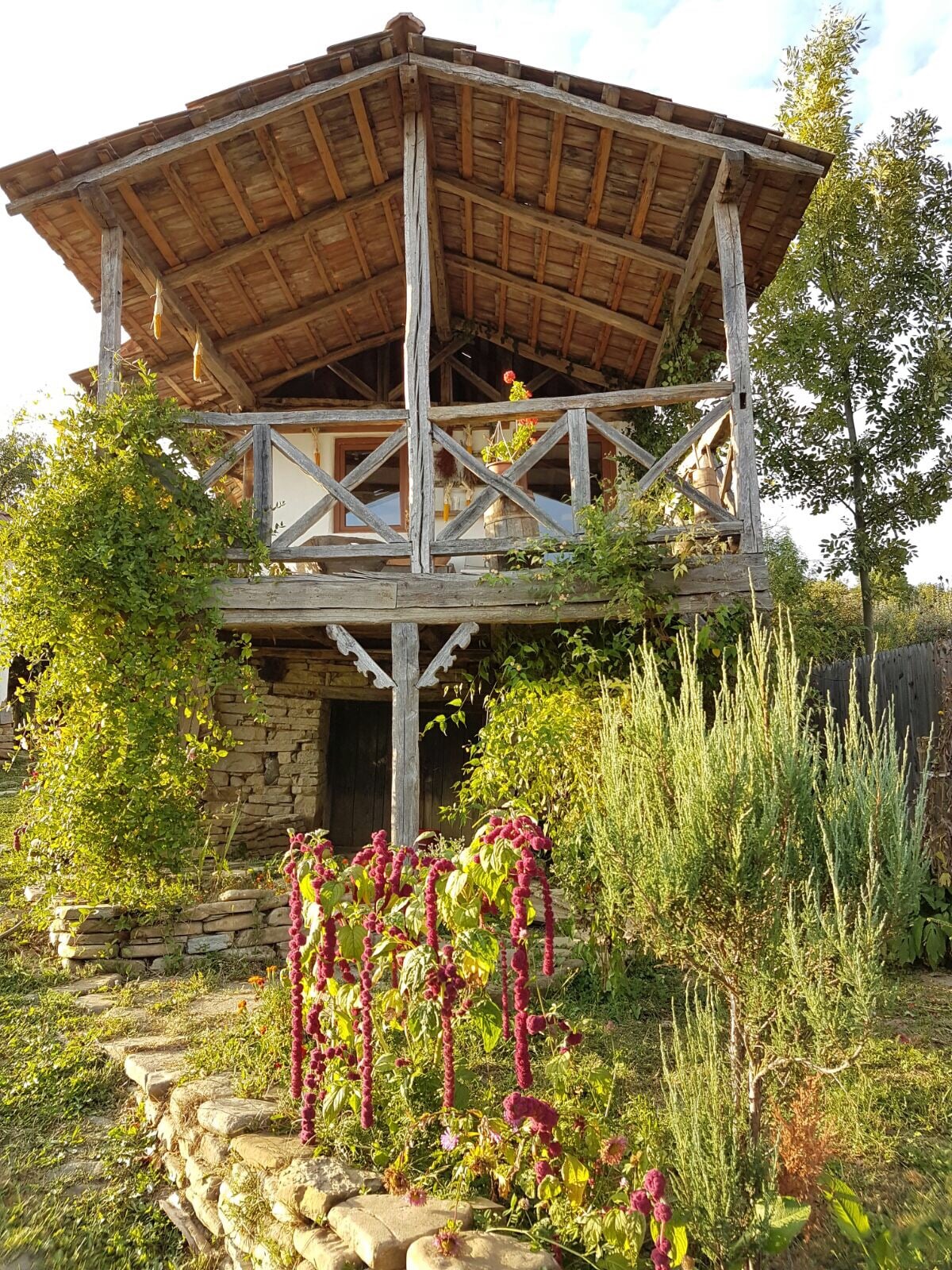 La baita si trova in un luogo tranquillo e remoto, perfetto per gli amanti della natura. È stata costruita su un albero e offre una vista sulla parte meridionale dei monti Făgăraș. Non abbiamo elettricità, ma abbiamo un impianto solare fotovoltaico. Non abbiamo acqua corrente né bagno, ma abbiamo una toilette compostante e una doccia in comune, così potrai sentirti più vicino alla natura. Puoi fare un barbecue, un falò, rilassarti sull'amaca, fare lunghe passeggiate e goderti il silenzio. I nostri animali domestici saranno felici di giocare con te
