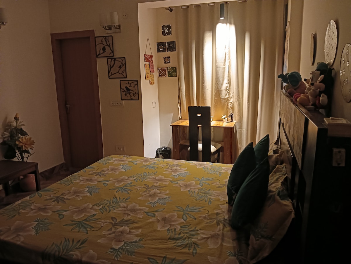 Vieni, innamorati del fascino unico di questo appartamento a tema bohémien a Gurgaon. Questo accogliente appartamento emana un'atmosfera calda e artistica che invita al relax. Luogo: Situato nella vivace strada principale di Joystreet, troverai una serie di delizie culinarie nei ristoranti sottostanti, boutique alla moda, caffè locali e un'esperienza cinematografica a Inox a pochi passi. Siete tutti benvenuti! ✿ L'aria condizionata è centralizzata, non possiamo cambiare la temperatura, l'edificio ha tutto il controllo.