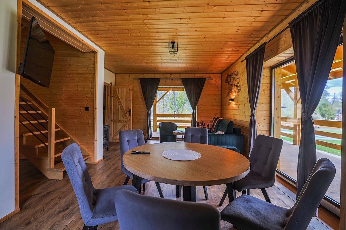 La casetta "Wilk" è una casa bifamiliare in tronchi di legno. Al primo piano ci sono 3 camere da letto per 2 persone, servizi igienici, mentre al piano terra: soggiorno, angolo cottura, bagno con doccia. Davanti alla casa è possibile rilassarsi sulla terrazza. All'interno della struttura è disponibile gazebo per barbecue, un posto per il falò, piscina all'aperto (luglio, agosto) balia, sauna (a pagamento) sala giochi, parco giochi Direttamente dalla struttura si può accedere a sentieri per passeggiate.